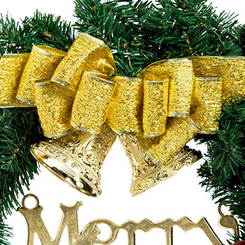 Gorgeous artificial pine wreath, Decorated with Bowknot/The Bells/Red Berries and other beautiful ornaments.