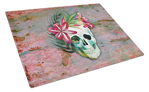 Caroline's Treasures Day of The Dead Skull Flowers Glass Cutting Board Large, Multicolor