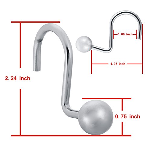 Welife-homeware Shower Curtain Hooks With Ball,Set of 12,Chorme Plated,GBMY004