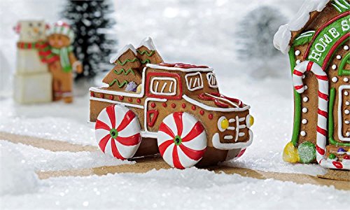 - Cute gingerbread truck figurine complete with Christmas trees in the bed and peppermint candy wheels
