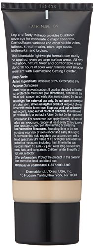 -. Binding : Health and Beauty -. ProductGroup : Prestige Beauty -. ProductTypeName : LUXURY_BEAUTY -. Title : Dermablend Leg and Body Makeup Liquid Foundation with SPF 25 for Medium Coverage & All-day Hydration, 12 Shades, 3.4 Fl. Oz.