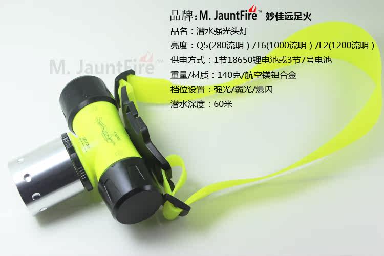 The main difference between T6/L2 and Q5 XPE diving submersible headlights headlights is light brightness (T6 is 1000 lumens, L2 is 1200 lumens; Q5 XPE is 300 lumens), diving depth and water resistance are same, the T6 and L2 also equipped with Aluminum Alloy light cup, Q5 XPE with the poly carbon plastic cup light