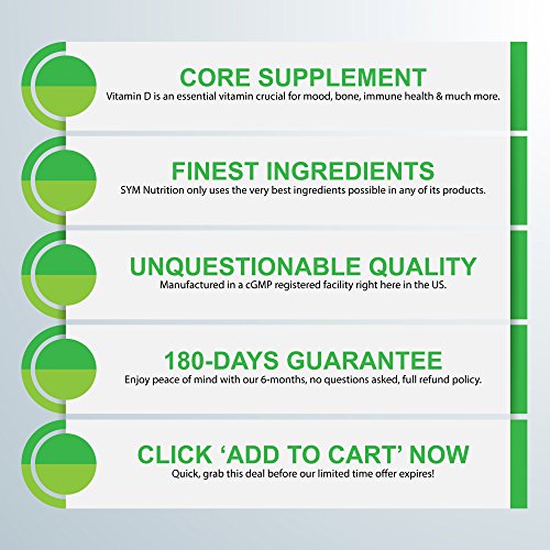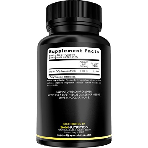 Vitamin D-3 5000 IU - 90 Count | Taken for Healthier Bones, Immune Function & Much More| V-Capsules