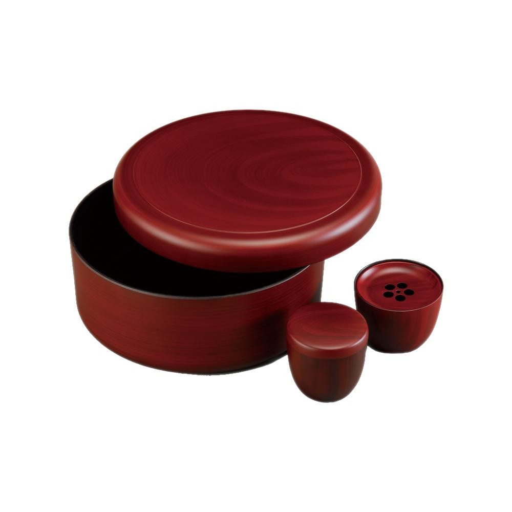 | サイズ | 茶櫃:φ31.7×12cm、茶筒:φ9×9cm、茶こぼし:φ10.2×8cm 個装サイズ:33×33×14cm |