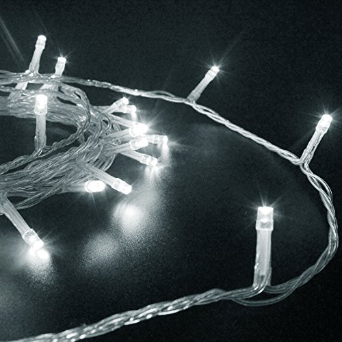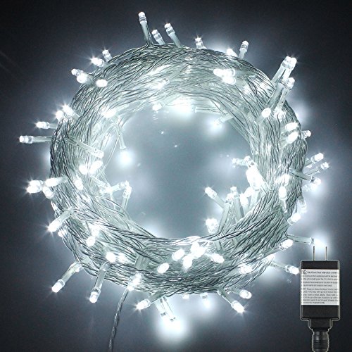 PMS 100 LED String Fairy Lights on Clear Cable with 8 Light Effects, Low Voltage Transformer included, UL Listed, Ideal for Christmas, Xmas, Party,Wedding,etc (100 LEDs, White)