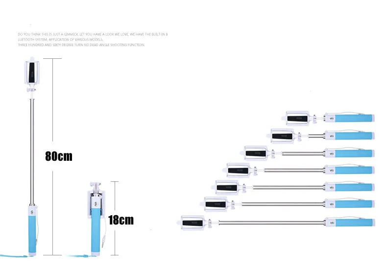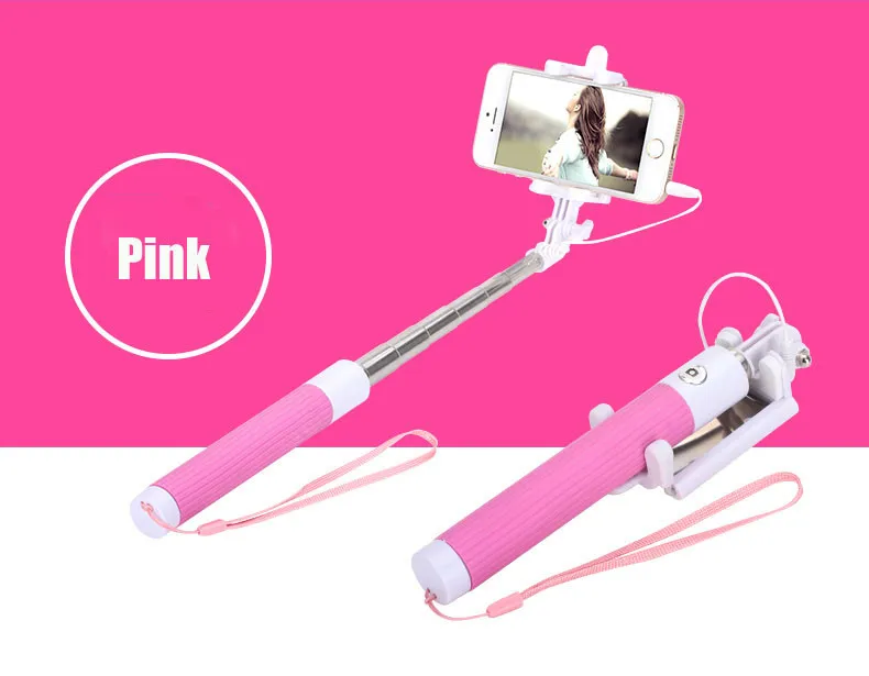 - SELFIE Extendable Monopod with 3.5mm Jack Cable and Remote Button for IOS and Android system.