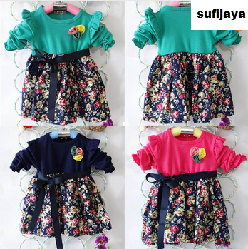 Baru anak-anak gadis berpakaian, Pita busur mengacak-acak gaun pesta bunga, Pakaian katun New girls dress, ruffled ribbon bow floral party dress, cotton clothing KID SJA3237482734823 HSL qty000