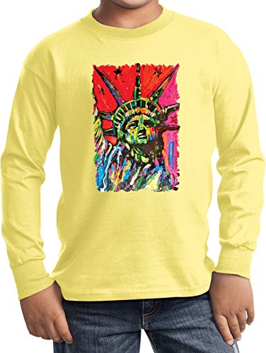 (Buy Cool Shirts)/Arts Crafts/Aprons Smocks/DIRECT FROM USA/Kids USA Statue of Liberty Painting Youth Long Sleeve, Yellow, Small