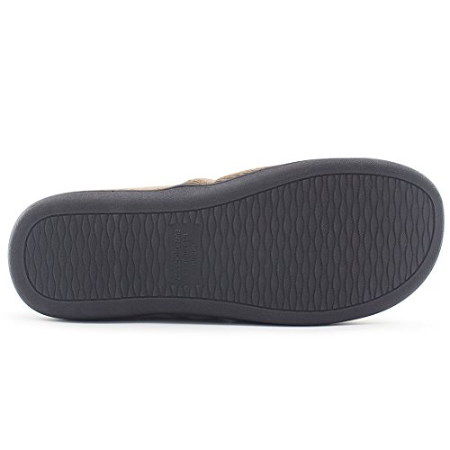 (HomeTop)/Men's/Sandals/DIRECT FROM USA/Men’s Comfy Fuzzy Knit Cotton Memory Foam House Shoes Slippers w/ Indoor, Outdoor Sole