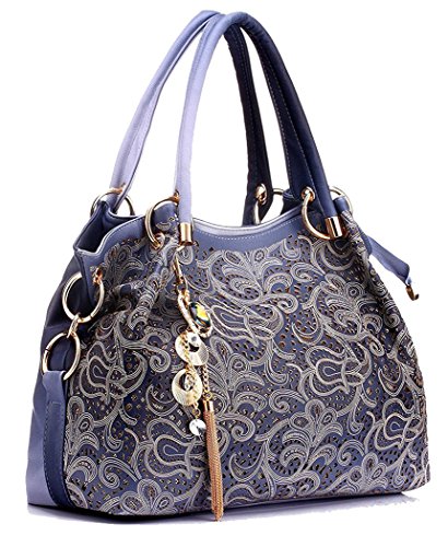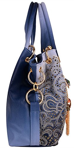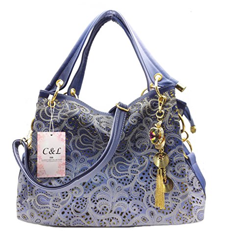 -. Title : Women's Tote Bag With Shoulder Strap, Hollow Out Faux Leather Tote Purse Shoulder Handbag With Dangles By C&L