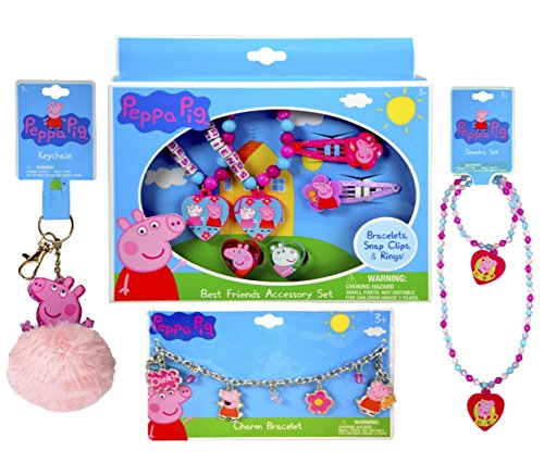 Peppa Pig Accessory Set Includes: 2 beaded bracelets w/charm, 2 snap clips, 2 rings