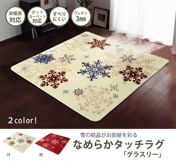 【商品名】雪柄 ラグ 正方形 『グラスリー』 アイボリー 185×185cm