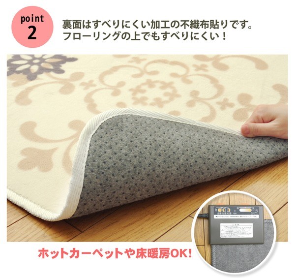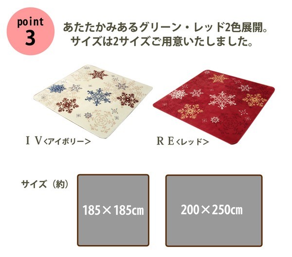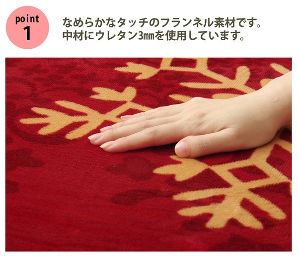 なめらかな肌触りのフランネルを使用した商品です。かわいらしい雪柄でお部屋を明るくしてくれます。寒い時期にはホットカーペットカバーとしてもご使用いただけます。