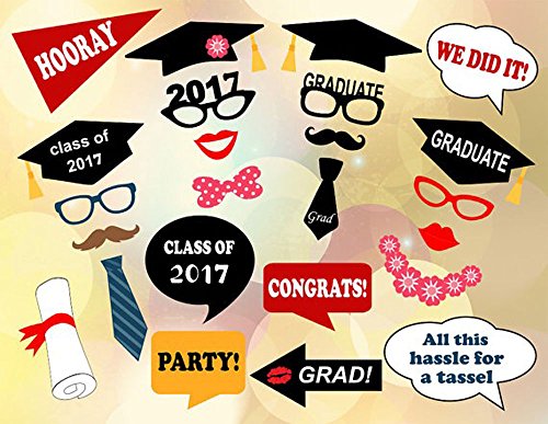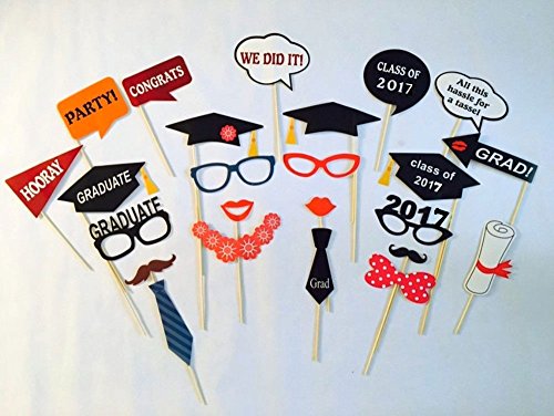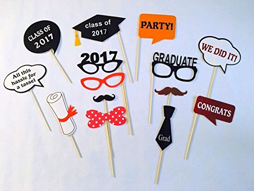 [USA-SALES] Graduation Party Photo Booth Props, 2017 Graduation Party Decorations,ATTACHED TO THE STICKS, NO DIY REQUIRED, by Usa-Sales Seller