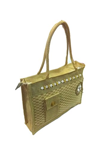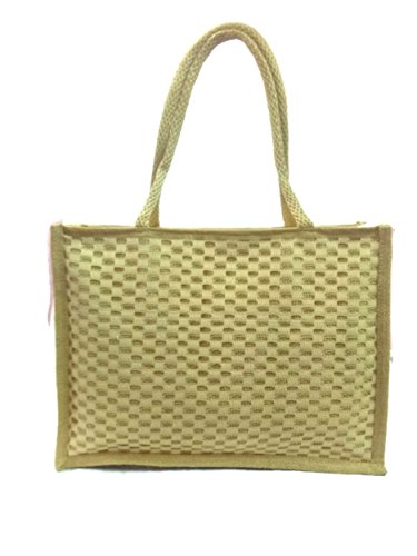 small large Medium Size double strap Stylish Eco-friendly Jute handbag Tote Bag with Zippered Closure jute laminated lunch bag variety bags (Large with Front Cellphone Pocket)