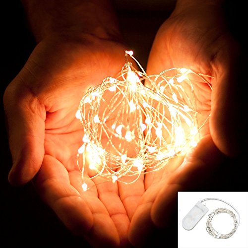 LYA 10-Pack Warm White Fairy Led Starry String Lights 6.8 Feets/2M 20 Lights, Waterproof Silver Wire and Lights and Powered by 2 x CR2032 Batteries(Included!) for Any DIY Decorations