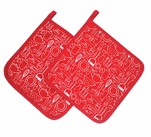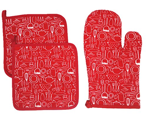 Mia'sDream 100% Cotton Kitchen Everyday Basic Terry Heat Resistant Coaster 1 Oven Mitt & 2 Pot Holder Set For Cooking (3, Red)