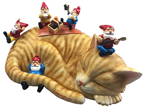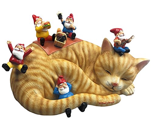 By Mark & Margot Outdoor Garden Gnomes Picnic Sleeping Cat Statue - Beautiful Funny Novelty Gift