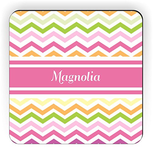 Rikki Knight "Magnolia" Pink Chevron Name Design Square Fridge Magnet