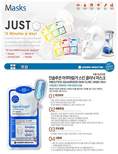 - Feature : 10 sheets / Leaders Clinic Aquaringer Skin Clinic Mask provides intense and long-lasting hydration. Diminishes dead skin cells. / Wrinkle Improvement Function certified by KFDA. / Paraben-free and dermatological tested. For all skin types, great for dry skin too.