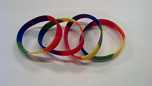 -. Feature : Set of 4 rainbow colored wristbands / Adult size - approx 8" circumference and stretchable / 1/2" wide / Silicone / No text on wristband