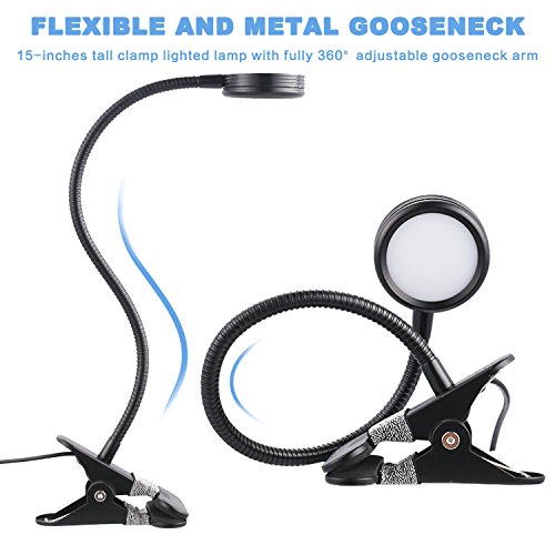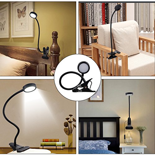 - FLEXIBLE AND METAL GOOSENECK: 15-inches tall clamp lighted lamp with fully adjustable gooseneck pipe. You can adjust it without loosening or tightening knobs to place your book light for best viewing.