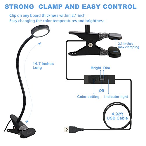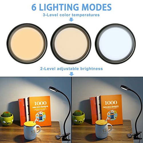 - DIMMABLE LED TABLE READING LIGHT:3-Level color temperatures and 2-Level adjustable brightness desk lamp.Total 6 models for reading, studying and sleeping also best choice for music stand light, computer keyborad partner.