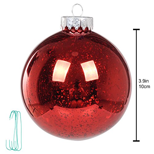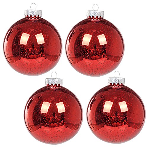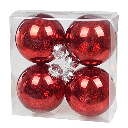 KI Store Christmas Mercury Ball Ornaments Outdoor Hanging Tree Decorations Large Shatterproof Shinny Vintage Balls Set of 4(4" Red)