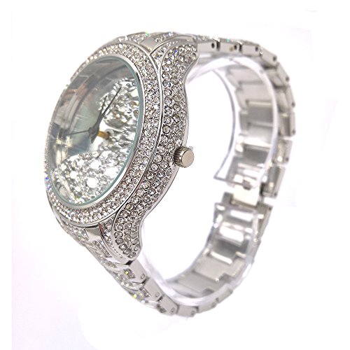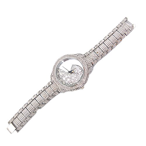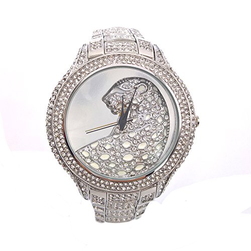 -. Title : Sheli Womens Extra Large Silver Tone Designer Leopard Embossed Dial Bling Diamonds Watch
