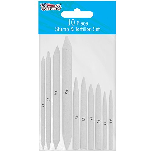 US Art Supply 10 Piece Artist Blending Stump and Tortillion Art Blenders - Pencil, Charcoal, Graphite, Colored Pencils