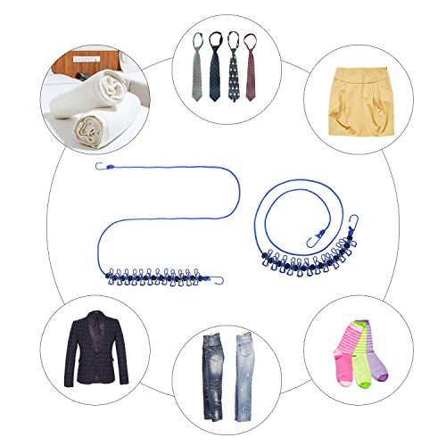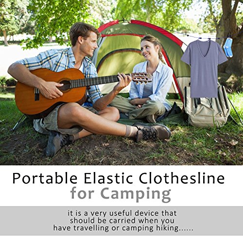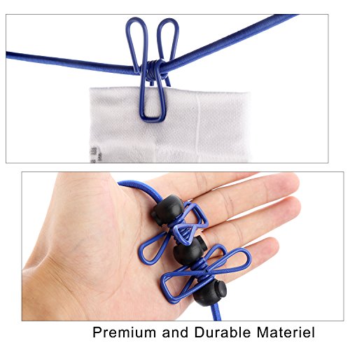 WAAO Portable Travel Clothesline Adjustable Elastic Travel Camping Windproof Clothesline with 12pcs Clips for Outdoor and Indoor Use (dark blue)