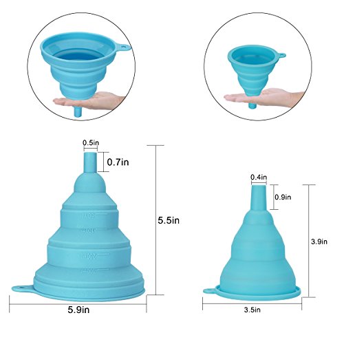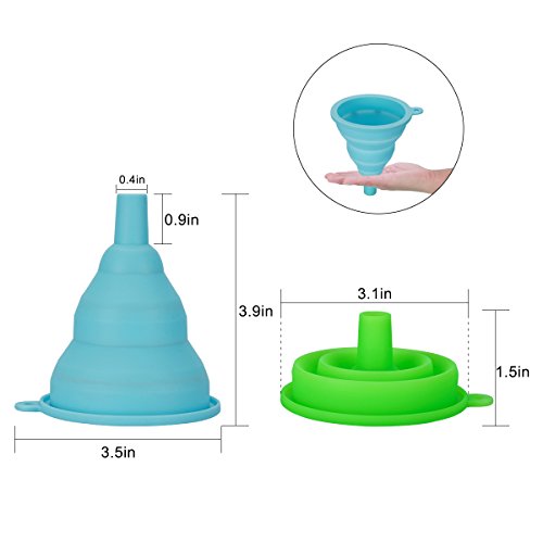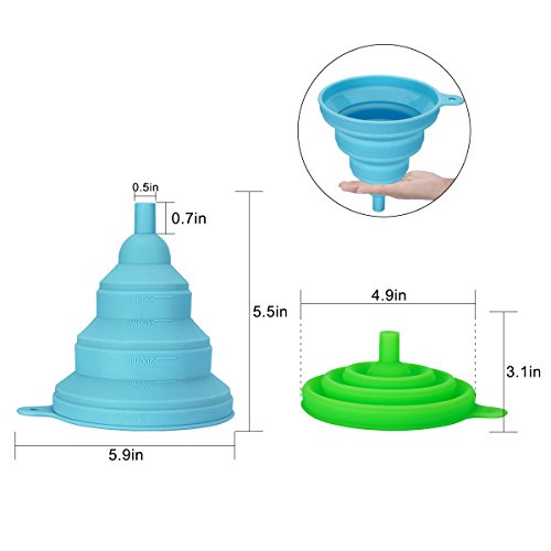 -. Feature : Innovative Collapsible Design: Expand to use, collapse to store. Occupy less kitchen space after folding, easy to store. With it, your kitchen will be tidier. / High Quality Material: Made of food grade silicone, BPA Free, FDA Approved. No need to worry that the funnel may damage the health of your families. / Safety and Health: The funnel¡¯s durable silicone construction means they can be used at -40 to 250 degrees Celsius, chemically stably. / Good Bye Flimsy: The thickening technology makes the funnel more endurable. Easy to clean and dry, top rack dishwasher safe. / Two Size/Color: There are two sizes and two colors for options. Different specifications serve different purposes, free to choose.