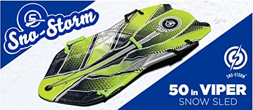 Studio : Sno-Storm Publisher : Sno-Storm Product Description SNO-STORMTM: Snow Sleds Winter Fun! Sno-StormTM designs are created by sport winter enthusiasts with outdoor fun and enjoyment in mind. Every design is meticulously crafted to embrace fun and enjoyment! The Sno-StormTM 50 inch Viper Snow Sled ushers in a new era for sleds creating a experience in quality and performance for foam construction. Years of extensive manufacturing experience create a perfect balance of material and performance all within one sled. Let the Sno-StormTM 50 inch Viper Snow Sled inspire a day of fun on the snow while promoting a new healthy lifestyle. Each sled is crafted from rigid foam construction that create a thrilling yet safer ride for enthusiasts of all ages. FEATURES: Soft Foam Construction Snow Sled, strong EPS core, pre-installed top loading tow rope plug, molded handles, contoured top deck, Contoured and grooved slick bottom skin. ? Strong EPS [expanded polystyrene] core ? Cross-linked WBS-IXL ( Water Barrier SkinTM- crosslink ) graphic top deck ? Engineered deck contour for improved grip ? Molded handles ? Duo toned rope with molded handle ? Graphic speed slick bottom with directional grooves ? AGIT Global's patented Graphic Film Technology [ #6,106,345 #6,988,920 ] ? Premium pre-installed top loading tow rope plug ? Length: 50" (1270mm) ? Width: 20.75" (527mm) ? Thickness: 1.175" (29.84mm) ? Volume: 12.80 liters ? Weight: 2.8 lbs. ? Suggested weight limit: 200 lbs. WHAT'S INCLUDED ? 1 Green-Black deck color / Silver marble Bottom color 50" Snow Sled ? 1 Green-Turquoise deck color / Turquoise marble Bottom color 50" Snow Sled ? Each board has a top loading tow rope plug with molded handle 0