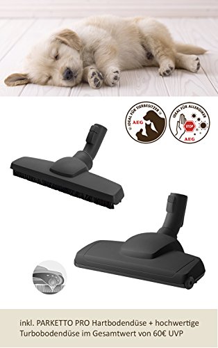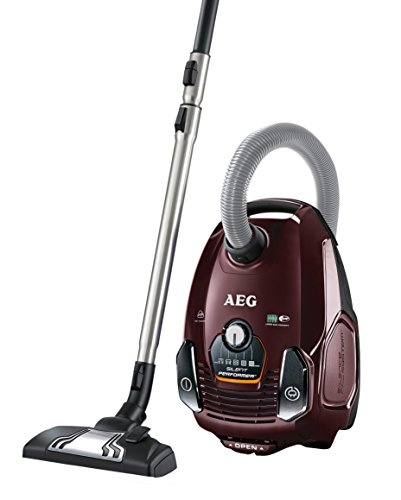 AEG Performer ASP7150 Staubsauger mit Beutel EEK A (700 Watt, inkl. Turbo- und Hartbodenduse, 3,5 l Staubbeutelvolumen, Softrader, waschbarer Hygiene Filter E12) dark bordeaux