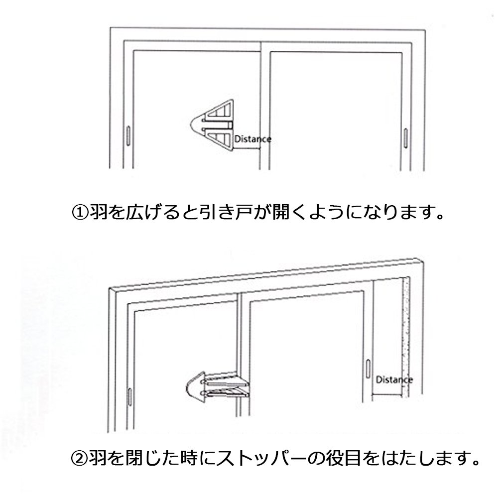 【簡単ロック式】戸を大きく開ける時は、羽を広げてください。羽を閉じた時のみストッパーの役目を はたします。