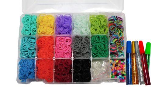 - Title : Loom Rainbow Rubber Band Complete Collection Organizer Storage Kit - Includes Over 4000 Rainbow Rubber Bands Including Glow In The Dark Individually Bagged and 100 S Clips In a Convenient Storage Organizer Case With Glitter Glue To Decorate