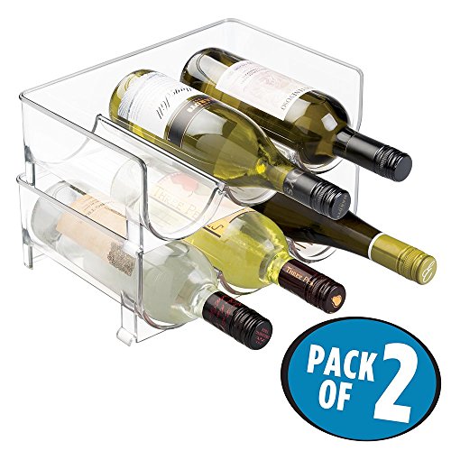 Product Description The mDesign Wine Rack is your solution for keeping your favorite beverages accessible. Made of strong and sturdy plastic, this wine holder holds up to three bottles and is stackable for customized storage. 0