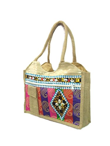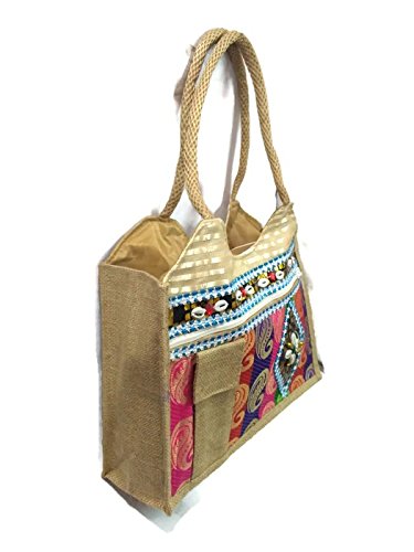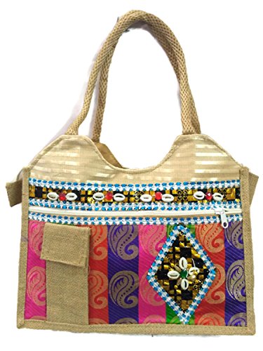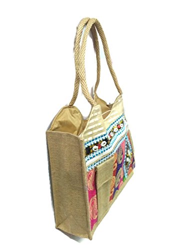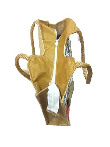 small large Medium Size double strap Stylish Eco-friendly Jute handbag Tote Bag with Zippered Closure jute laminated lunch bag variety bags (Medium Size with Cellphone Pocket)