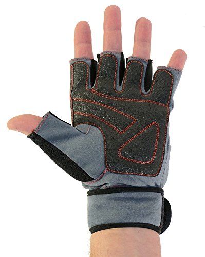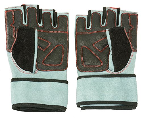 -. Feature : Perfect for cycling and weightlifting or any other Gym workout. / Thick tough slip-resistant pad for palm and fingers with reinforced key contact points on the palm. Double Stitching for extra strength. / Four-way Stretch Spandex between fingers for extra flexibility and breathable stretch Lycra fabric on the back of the hand, to help the movements of knuckles. / Attractive design. Durable long lasting synthetic Amara leather. / Complete wrist wrap and an adjustable strap with a steel loop in the back for a snug fit.