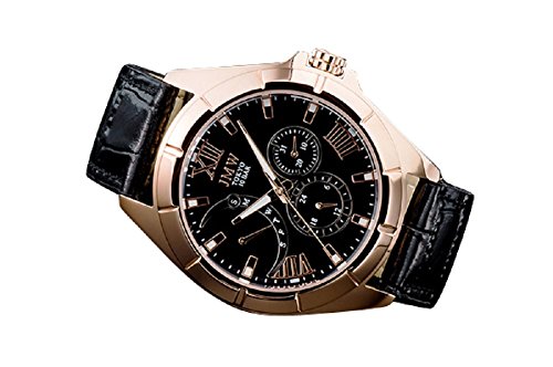 -. Title : 【JMW】ブラック&ゴールド上級レトログラード本革100m防水マルチ腕時計メンズ【世界限定200本】