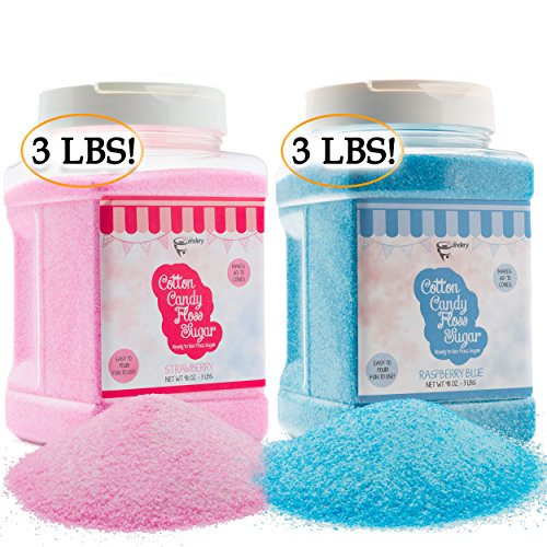 The Candery Cotton Candy Floss Sugar (2-Pack) | Raspberry Blue and Strawberry | Plastic, Reusable Jars | Easy Pour Spout or Scoop | Includes Scooper | 3 LBS Jars