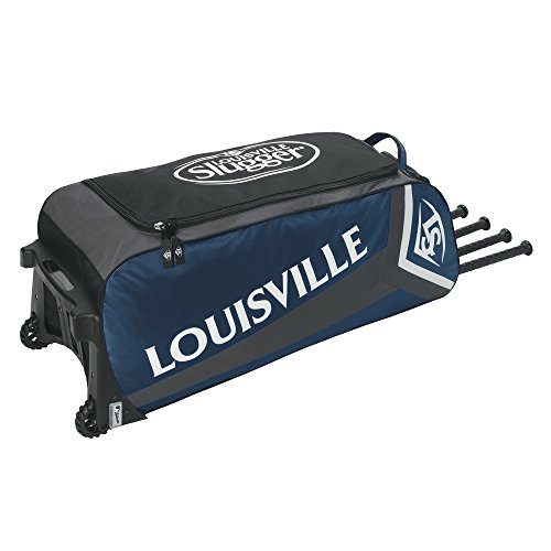 [Description] Louisville Slugger Series 7 Ton Wheeled Bag High rise Wheel chassis Rigid bottom + rails stabilizes rolling Removable personalization panel Bat compartment holds 4 bats