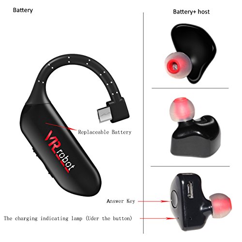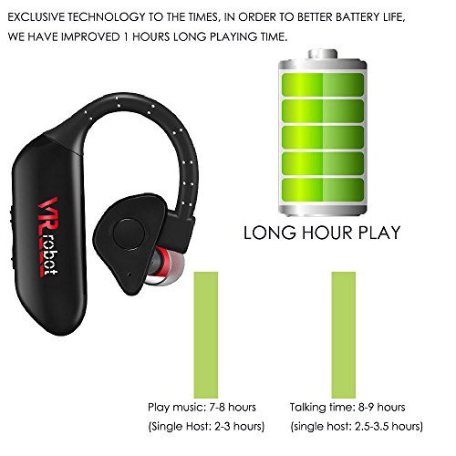 VR-robot Sport Headset, Sweatproof Earphones, Q8VR4 Wireless Bluetooth Headphone,Mini Earphone for iPhone 7,iPad,Samsung,Andriod (Black)