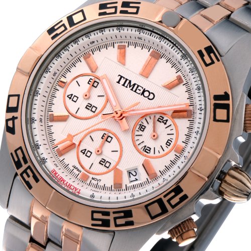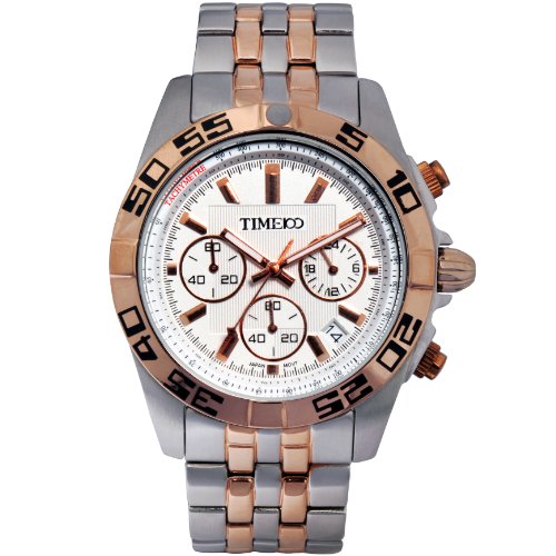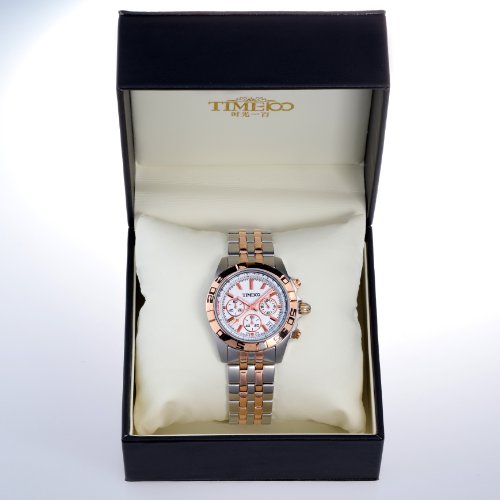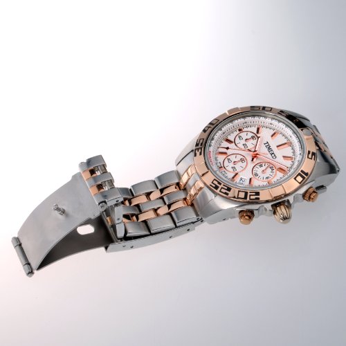 TIME100 MEN'S THREE-SUBDIAL MULTIFUNCTION STEEL&ROSE GOLDEN BAND SPORT&CASUAL WATCH #W70002G.03A