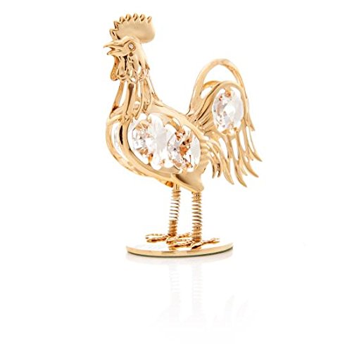 Spring-Bounce Rooster 24k Gold Plated Figurine with Swarovski Crystals