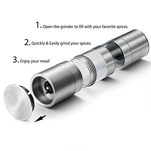 SMOOTH OPERATED & LABOR-SAVING - Stainless steel body and ceramic core enhance durability,make the salt and pepper grinder durable and stable.