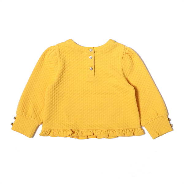 상품설명 옐로 프릴 탑입니다. 봉긋한 퍼프소매라인에 진주단추가 들어간 소매로 레트로 무드를 완성했구요. 밑단에 들어간 프릴로 사랑스럽게 연출 가능합니다.