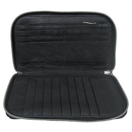 Binding : Apparel Product Description Exterior: 100% Genuine Black Cobra with Leather Buck Stitch | Interior: Leather | 8" x 4.5" | 15 Card Pockets | 6 on One Side | 9 on Other Side | 1 Large Pocket on Left Lining underneath the 9 Card Pockets Accordion Side Pocket on Inner Right | 2 Open | 1 Change Pocket with Zipper Closure 0