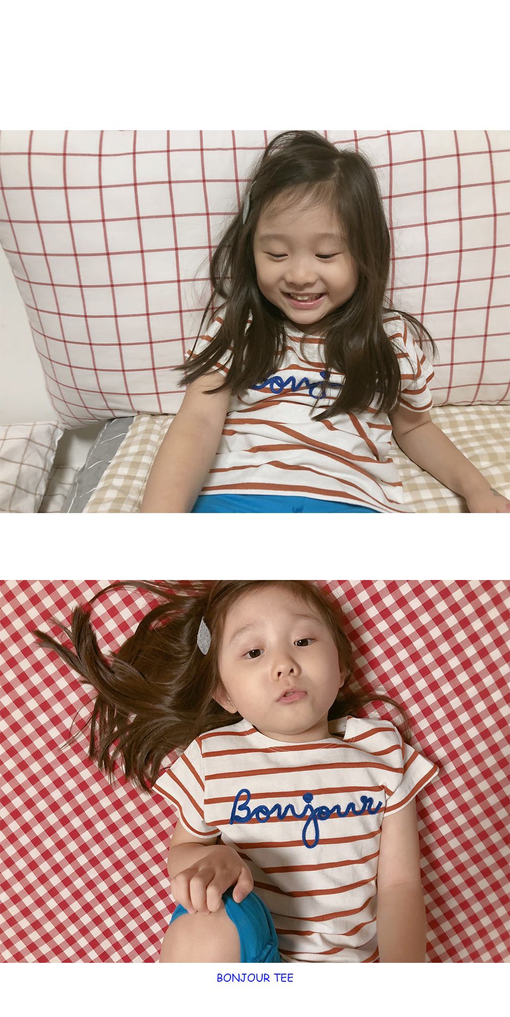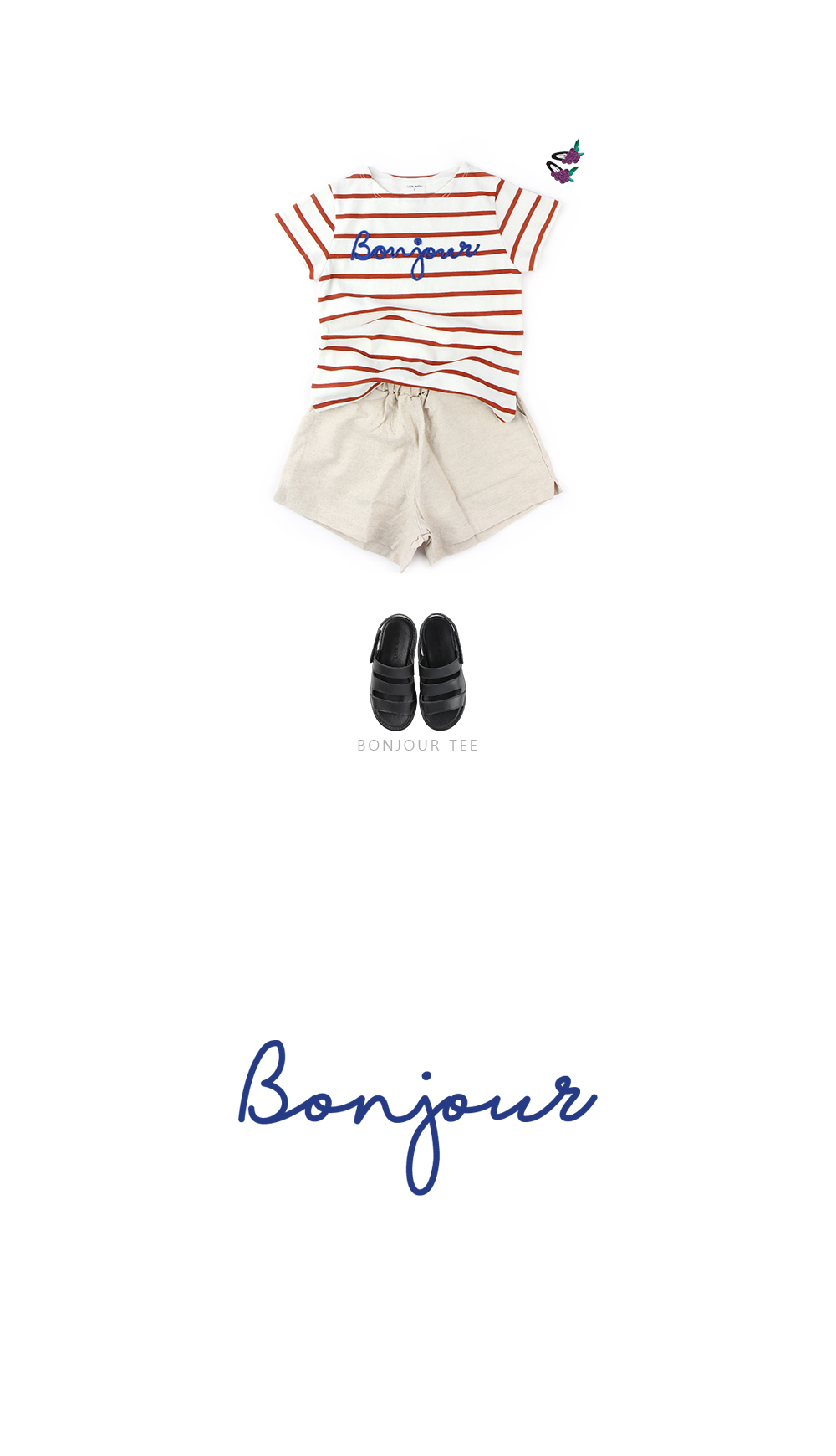 블루색상의 Bonjour 레터링으로 시원한 느낌과 발랄함을 더해주었어요!