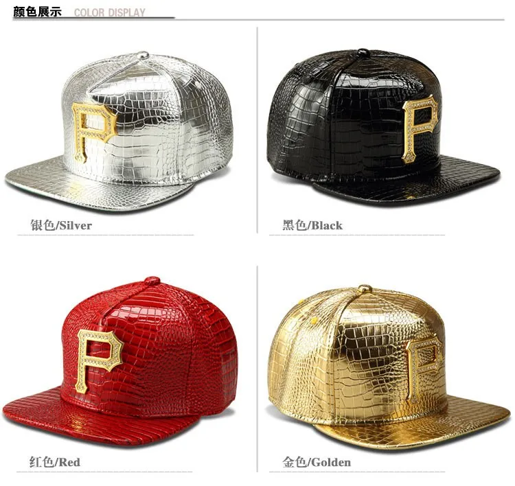 | [해외]2017 고품질 스타 브랜드 실버 황금 P 편지 금속 새로운 남성 pu 힙합 모자 야구 캐주얼 snapback 4 색상 |